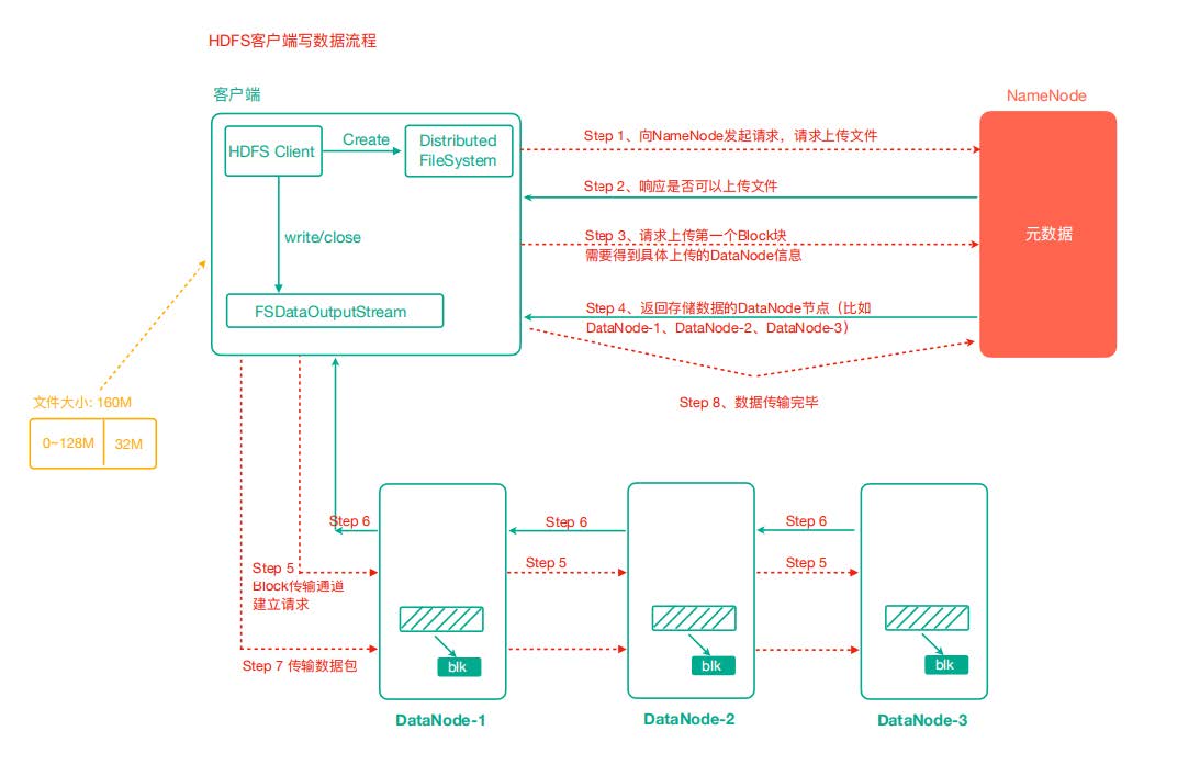 - 额外副本:如果有更多副本,它们将随机分布在不同的DataNode上。