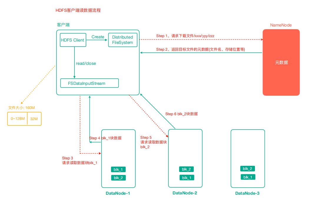 - 客户端请求处理:NameNode响应客户端的请求,提供文件的元数据,包括文件块的位置信息,以便客户端可以直接从DataNode读取数据。